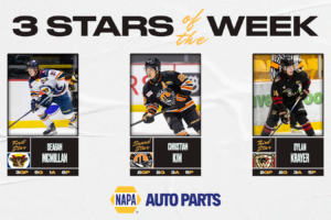 Wenatchee Wild forward Parker Murray, Vernon Vipers goaltender Ethan David and Nanaimo Clippers goaltender Shane Shelest have been named the NAPA Auto Parts 3 Stars of the Week.