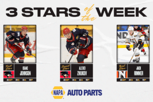 Penticton Vees forward Josh Nadeau, Vernon Vipers goaltender Roan Clarke and Salmon Arm Silverbacks goaltender Owen Say have been named the BCHL 3 Stars of the Week.