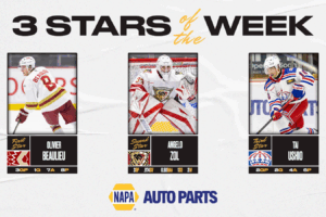 Among Atlantic Hockey goaltenders last week with a minimum of 33 per cent of team minutes played, Leroux’s 1.00 goals-against average led the conference, and his .944 save percentage was the second-highest. The Candiac, Que. native’s lone game last week was a 4-1 win over Mercyhurst on Saturday where he made 17 saves.