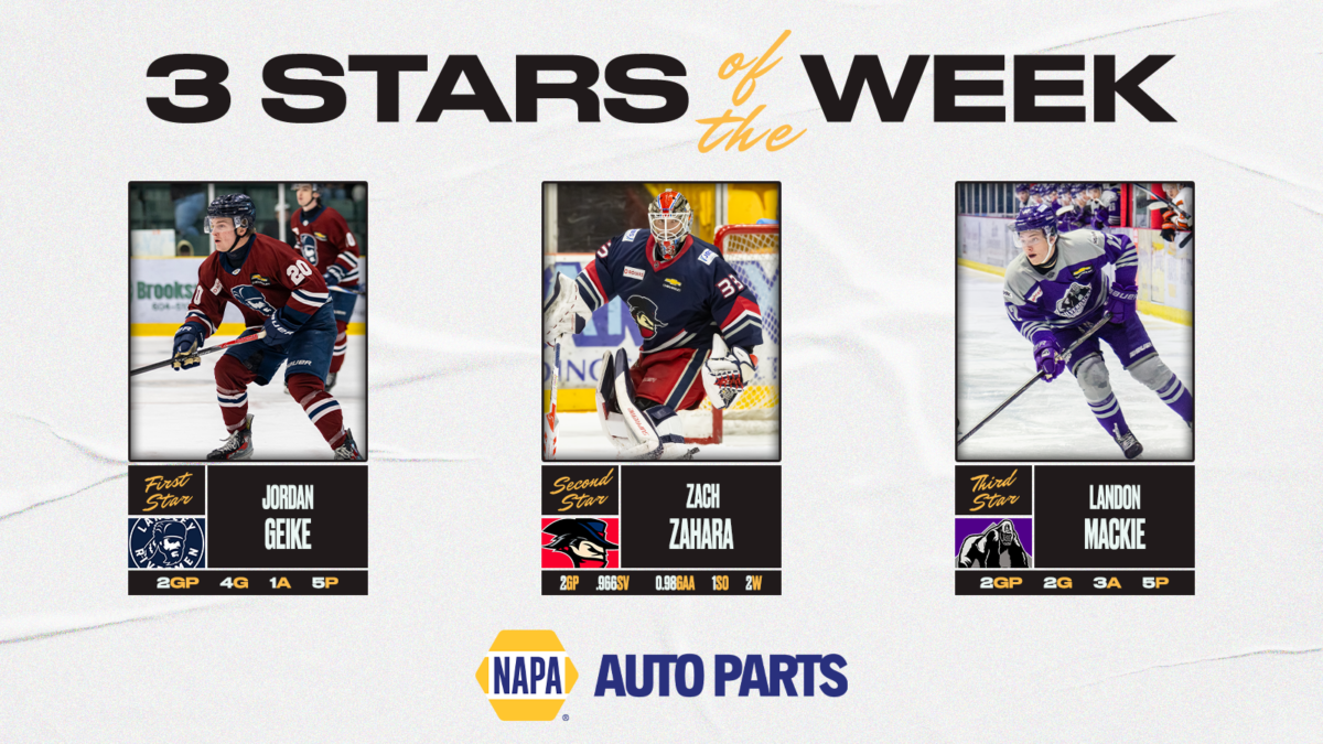 Photo credits: Matt Piotrowski (Dilevka), Island Images (Benayon), Target Photography (Grabas) Brooks Bandits forward Dmitrijs Dilevka, Langley Rivermen forward Zachary Benayon and Chilliwack Chiefs forward Nico Grabas have been named the NAPA Auto Parts 3 Stars of the Week. 1st Star – Dmitrijs Dilevka (F) – Brooks Bandits Dilevka averaged three points per game last […]